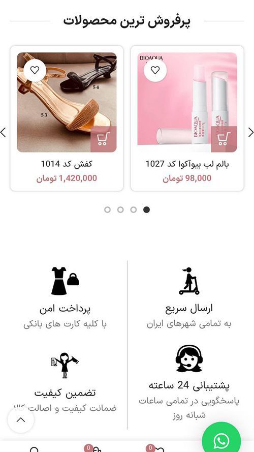 - امکان تعریف محصولات با رنگ بندی و سایز بندی های متنوع